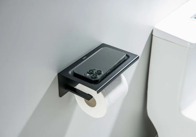 Бумагодержатель с полкой AQUATEK, матовый черный AQ4309MB ЛИБРА