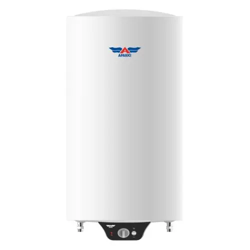 Внутренний бак изготовлен из холоднокатаной углеродистой стали с покрытием из стеклокерамической эмали толщиной 220µ, запеченной при температуре 860ºC, что обеспечивает надлежащую защиту от коррозии. Кроме того, в аппарат встроен магниевый анод (Ø20x300 мм), который служит дополнительной защитой. Цилиндрическая часть внешнего корпуса изготовлена из листовой углеродистой стали толщиной 0,4 мм, покрытой белой эпоксидно-полиэфирной краской толщиной 70µ, нижняя и верхняя крышки изготовлены из ABS-пластика толщиной 2,5 мм и механически прикреплены к цилиндру. Между котлом и внешним корпусом находится изоляция из вспененного полиуретана толщиной 20 мм, не содержащая фреона. Котел подвешивается к стене с помощью 2 ножек с 2 винтами каждая, которые крепятся непосредственно к котлу с помощью 2 винтов M8. Это соединение выполняется солидарно с внешним корпусом, который таким образом механически крепится к узлу. Отверстия в стене для подвешивания прибора должны иметь сверло 10 мм и глубину 50 мм в случае кирпичных стен толщиной 10 см с включенным раствором. Аппарат может быть установлен как вертикально, так и горизонтально с подводящими трубами с правой стороны аппарата или с трубами с левой стороны (трипозиционно). Номинальное давление аппарата составляет 9 бар (0,9 МПа) и регулируется гидравлическим предохранительным и обратным клапаном, настроенным на 10 бар (1,0 МПа), поставляемым с каждым аппаратом. Вода нагревается двумя бронированными нагревателями под оболочкой мощностью 1000 Вт каждый и поверхностной нагрузкой 7 Вт/см2 , которые могут быть активированы независимо друг от друга с помощью переключателя, установленного на передней части крышки люка. Оба нагревателя установлены на эмалированном фланце из углеродистой стали, так что их можно заменить без опорожнения аппарата. Температура регулируется ламповым термостатом, установленным на 75ºC, который управляется с помощью ручки на передней части крышки люка. В случае отказа регулирующего термостата срабатывает двойной предохранительный колбовый термостат, установленный на 105ºC. Класс I, IP24 и заводская установка соединительного штекера. Пилотная лампочка на передней части крышки регистра указывает на работу нагревателя. В соответствии с директивой EuP, профиль потребления 'M' и энергоэффективность 'C'.