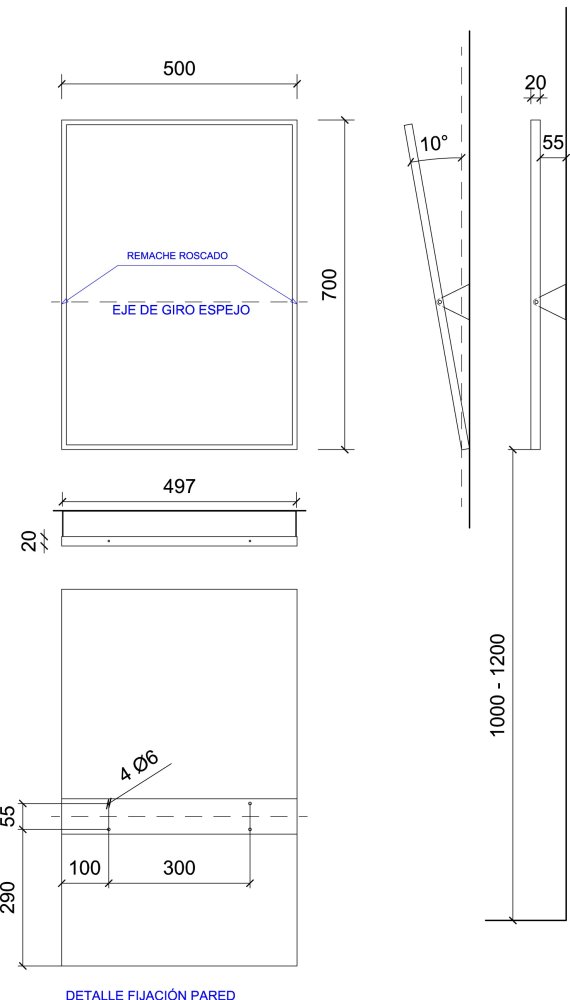 Антивандальное зеркало с рамкой из нержавеющей стали имеет возможность регулировки угла наклона в пределах 10⁰.