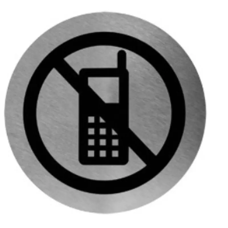 Знак «Запрещено пользоваться мобильным телефоном». Изготовлен из нержавеющей стали AISI 304, толщиной 0,5 мм, сатинированное покрытие. Ассортимент вывесок от Mediclinics изготовлен из нержавеющей стали толщиной 0,5 мм, а тема выдавлена черным цветом на нержавеющей стали. Они предназначены для всех типичных туалетов в общественных местах, таких как спортивные залы, магазины, кемпинги, рестораны и многие другие. Конструкция из нержавеющей стали AISI 304 защищает изделие от ржавчины и обеспечивает качество и долговечность. Все знаки имеют круглую форму, диаметром 116 мм, крепятся к стене с помощью двустороннего скотча. Прочный и антивандальный. Легко очистить.