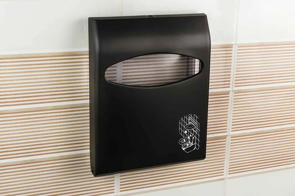 Стильный черный диспенсер для накладок на унитаз с настенным креплением в комплекте. Рассчитан для использования в места…