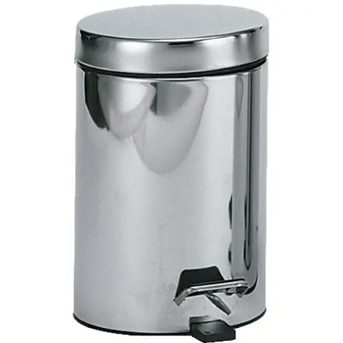 Гигиеническое мусорное ведро из нержавеющей стали AISI 430, глянцевая. Толщина пластины: 0,35 мм Крышка с педальным управлением. Черное пластиковое внутреннее ведро с ручкой.