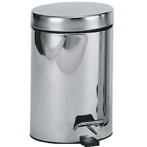Гигиеническое мусорное ведро из нержавеющей стали AISI 430, глянцевая. Толщина пластины: 0,35 мм Крышка с педальным управлением. Черное пластиковое внутреннее ведро с ручкой.