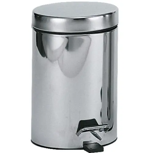 Гигиеническое мусорное ведро из нержавеющей стали AISI 430, глянцевая. Толщина пластины: 0,35 мм Крышка с педальным управлением. Черное пластиковое внутреннее ведро с ручкой.