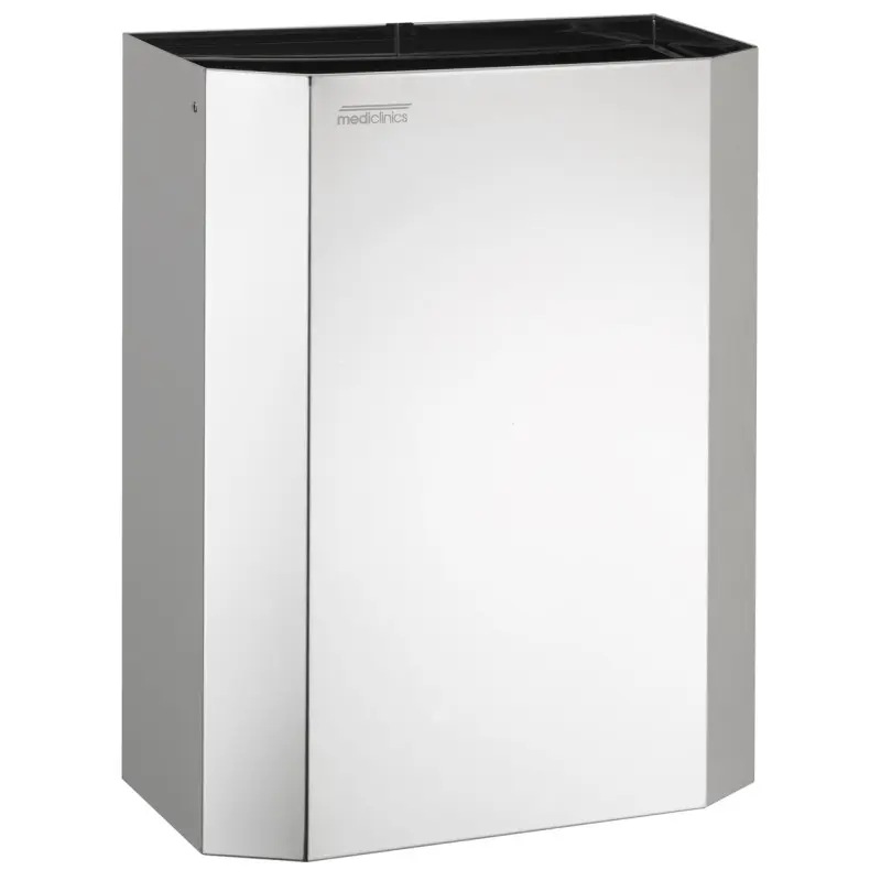 Контейнер для мусора без крышки объемом 25 л с внутренним пластиковым кольцом для держателя мешка. Для напольного или настенного монтажа с помощью 4 отверстий, просверленных на задней стенке прибора. Подходит для туалетов и внутренних общественных помещений со средней проходимостью. Модель подходит для общественного пользования.