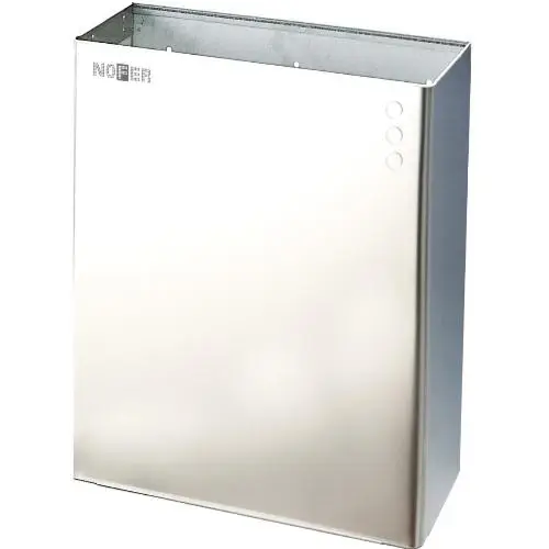 Настенный контейнер для мусора выполнен из нержавеющей стали AISI 304 и может быть монтирован как на пол, как и на стену. Оборудован внутренними крючками для полиэтиленовых пакетов. Корпус контейнера не имеет острых углов, а стенки корпуса имеют толщину 1,0 мм, благодаря этим качествам контейнер настенный считается антивандальным. Две точки крепления к стене. Винты включены.