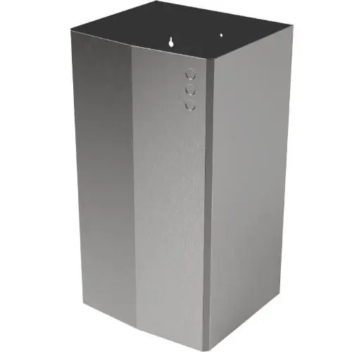 Настенный контейнер для мусора выполнен из нержавеющей стали AISI 304 для монтажа на стену. Оборудован внутренними крючками для полиэтиленовых пакетов. Корпус контейнера не имеет острых углов, а стенки корпуса имеют толщину 1,0 мм, благодаря этим качествам контейнер настенный считается антивандальным. Две точки крепления к стене. Винты включены. Контейнер сделан в современном дизайне EVO и отлично сочетаются с другими аксессуарами их этой линейки. Объем внутреннего бака 65 литров, также возможна установка на пол
