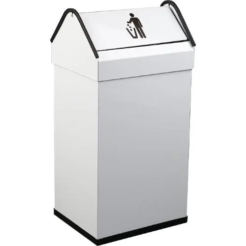Белый контейнер для мусора металлический из окрашенной стали объёмом 40 литров. Контейнер имеет съемную крышку, а также в комплекте поставляются 2 наклейки. Эта модель может быть установлена как снаружи, так и внутри помещения. В отличие от большинства изделий испанского производителя, контейнеры для отходов 14118 сделаны не из нержавеющей, а из оцинкованной стали.