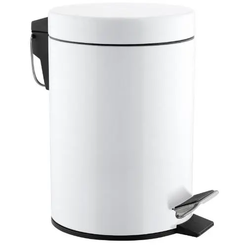 Закрытое мусорное ведро с круглым корпусом, объемом 3 литра, изготовленное из стали и окрашенное в белый цвет, представл…