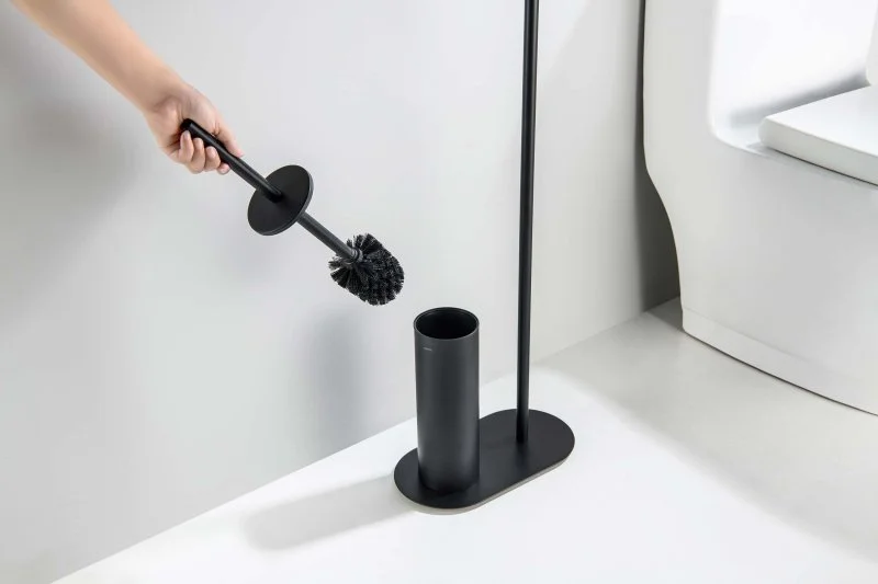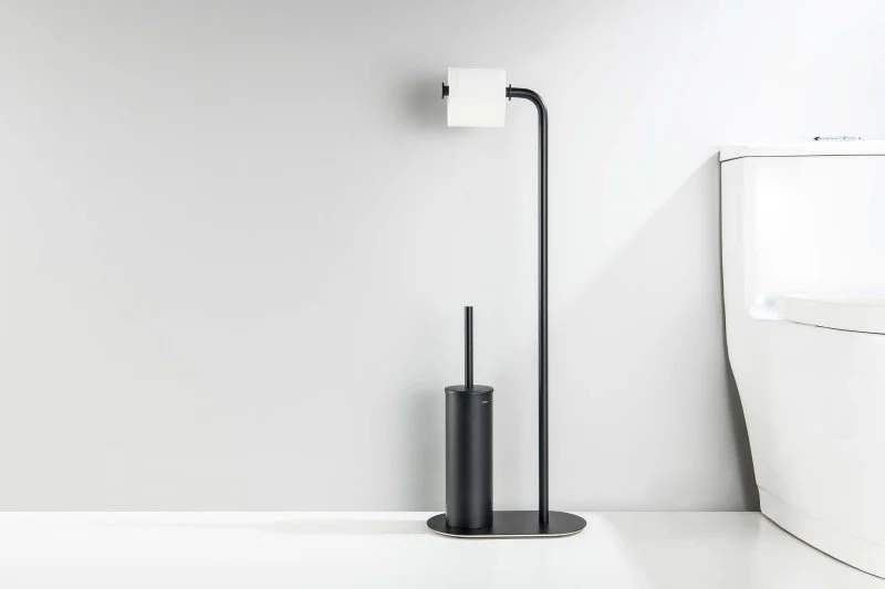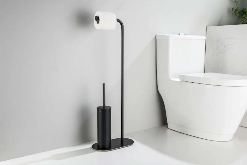 Держатель туалетной бумаги с ершиком напольный AQUATEK, матовый черный AQ4231MB ОБЕРОН