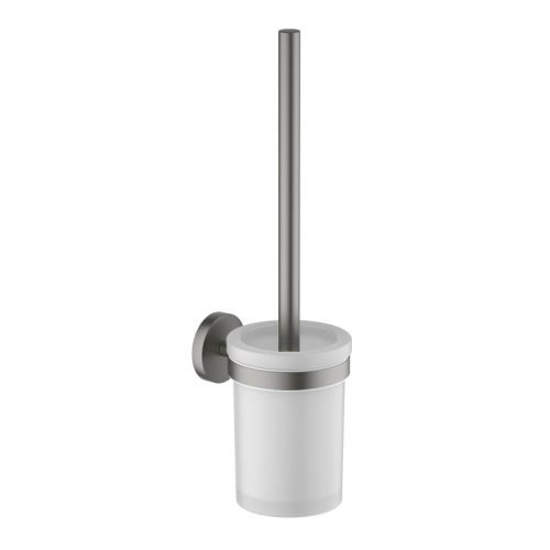 Настенный туалетный ершик из серии ЕВРОПА с покрытием «оружейная сталь», изготовлен из прочной латуни и матового стекла. Размеры — 357×94×119 мм, корпус с креплением на шурупы, удобен для монтажа на стену. Щетка — пластиковая, эффективно очищает унитаз, при этом дизайн лаконичный и стильный. Материал корпуса — латунь с покрытием, колба — матированное стекло, вес 0,8 кг. Отличный выбор для современного интерьера с акцентом на качество и долговечность.