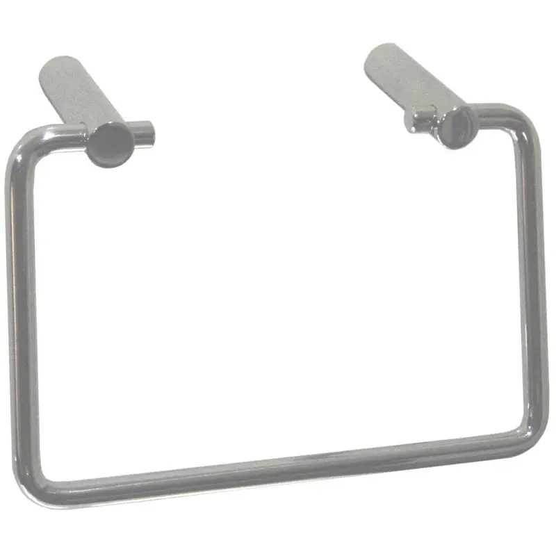 Квадратное кольцо для полотенец из нержавеющей стали AISI 304 с блестящей отделкой, толщиной 0,8 мм, для настенного монтажа. Долговечен благодаря качеству нержавеющей стали AISI 304. Подходит для гостиничного бизнеса, для оснащения ванных комнат в гостиничных номерах и для общественного пользования. Не имеет съемных компонентов. Обычно идет в комплекте с дозатором для мыла из нержавеющей стали. В комплект поставки входят шурупы и пластиковые дюбели для кирпичных стен.