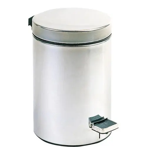 Гигиеническое мусорное ведро из нержавеющей стали AISI 430, глянцевая. Толщина пластины: 0,35 мм Крышка с педальным управлением. Черное пластиковое внутреннее ведро с ручкой.