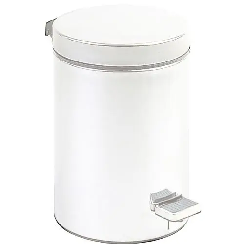 Гигиеническое мусорное ведро из нержавеющей стали AISI 430, белая. Толщина пластины: 0,35 мм Крышка с педальным управлением. Черное пластиковое внутреннее ведро с ручкой.