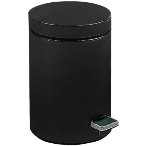 Гигиеническое мусорное ведро из нержавеющей стали AISI 430, глянцевая. Толщина пластины: 0,35 мм Крышка с педальным управлением. Черное пластиковое внутреннее ведро с ручкой.