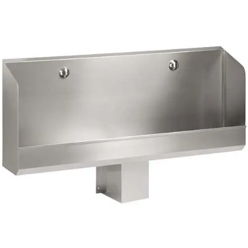 Нержавеющий писсуарный жёлоб, ширина 120 см, 2 встроенные смывные головки, внутреннее подключение воды, подключение к ка…