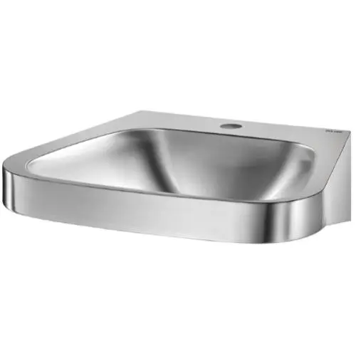 Настенная раковина изготовлена из бактериостатической нержавеющей стали AISI 304 и имеет матовую поверхность. Размеры раковины составляют 540 x 480 мм. Толщина стали составляет 1,2 мм для чаши и 1,5 мм для краев. Поверхность раковины не имеет острых краев.