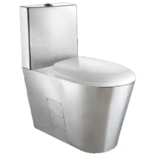 Туалет из нержавеющей стали с прямоугольным баком имеет двойную систему слива воды. Предназначен для мест с большой прох…