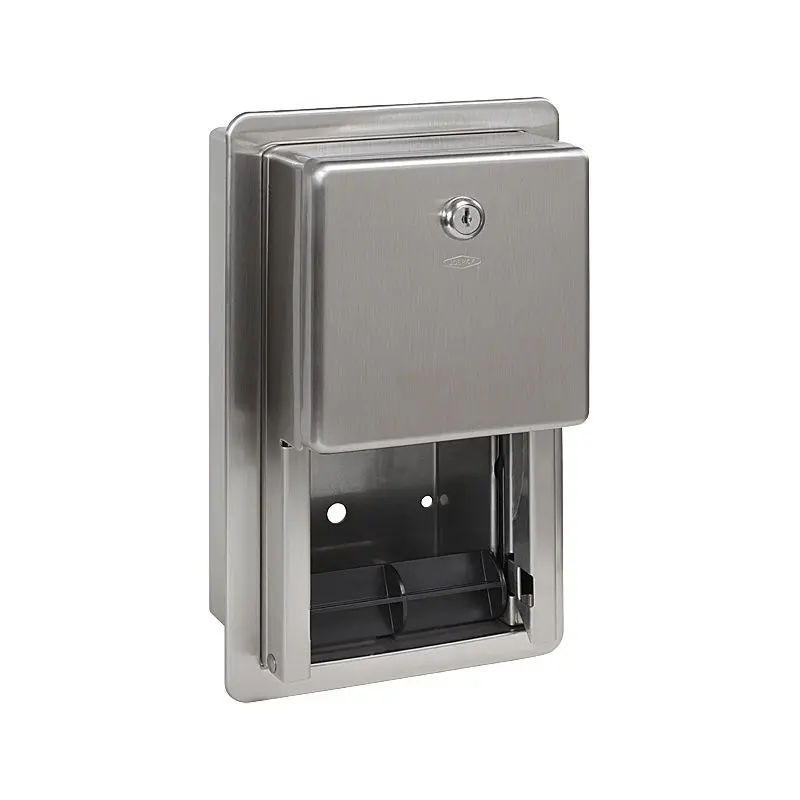Держатель из нержавеющей стали для двух рулонов туалетной бумаги, антивандальное исполнение, настенный монтаж, максимальный диаметр рулона 135 мм замок и ключ в поставке, матовая поверхность.