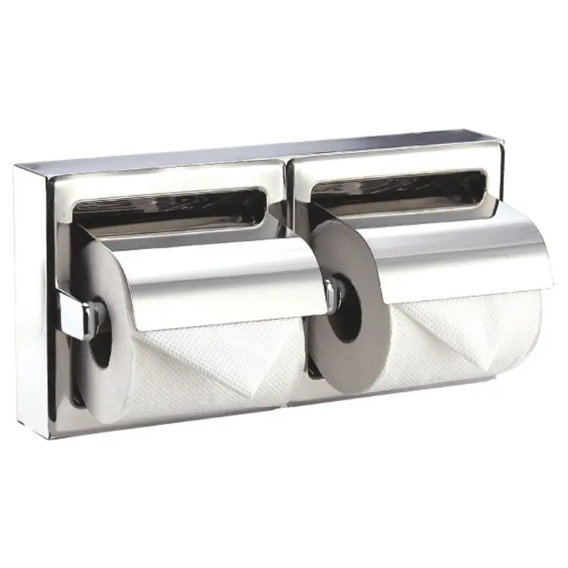 Держатель туалетной бумаги с двумя рулонами и крышкой, яркая отделка, изготовлен из нержавеющей стали AISI 304. Констр…