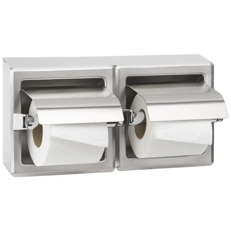 Держатель туалетной бумаги с двумя рулонами и крышкой, сатинированная отделка, изготовлен из нержавеющей стали AISI 304.…