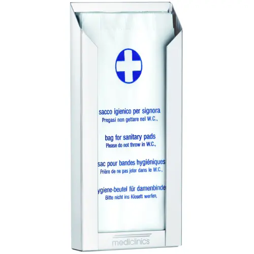 Настенный держатель для санитарных пакетов, удобный в использовании, изготовлен из прочного материала, аккуратный внешний вид.