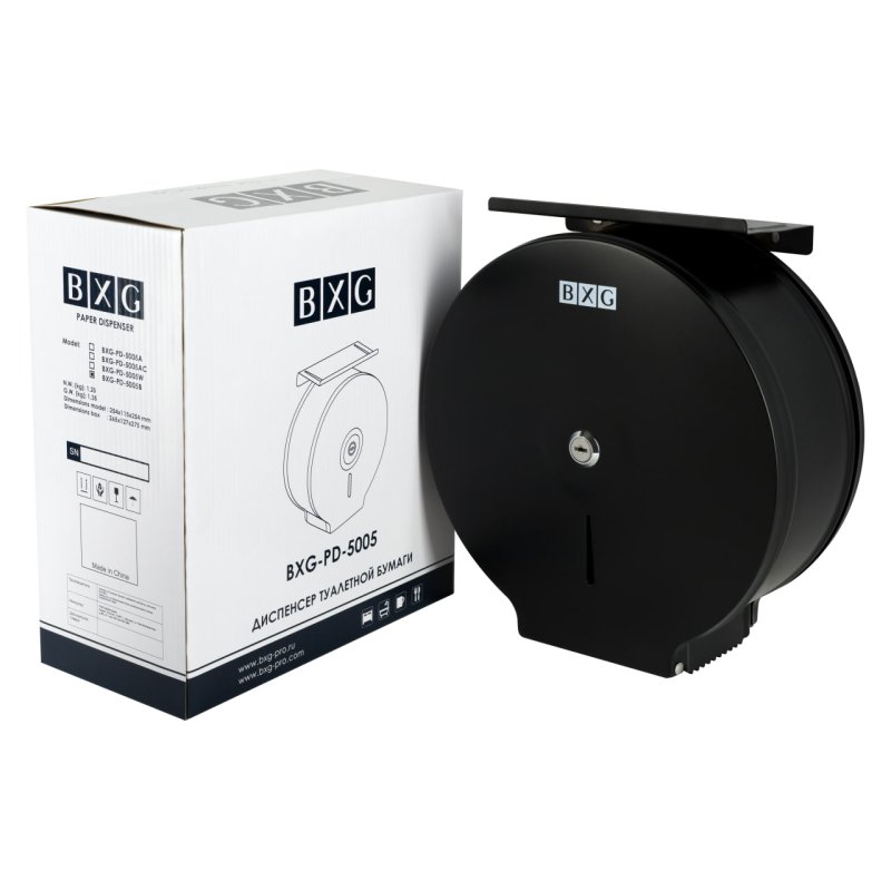 BXG-PD-5005B — идеальное решение для рационального использования туалетной бумаги в санузлах с высокой посещаемостью. Изделие изготовлено из долговечной нержавеющей стали премиум-класса, окрашено в глубокий стильный черный цвет с приятной бархатной поверхностью. Практичная особенность устройства — дополнительная поверхность для комфортного размещения мобильного телефона или иных необходимых мелочи.