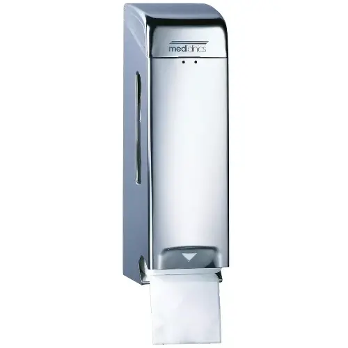 Модель предназначена для санузлов с большой проходимостью людей. Диспенсер изготовлен из нержавеющей стали. Обладает антивандальными свойствами - anti-вандализма, что важно при установки в места с большой проходимостью. Корпус сделан из твердой стали и имеет замок безопасности Mediclinics  со стандартный с ключом, который обеспечивает доступ к замене туалетной бумаги. Окошечко сбоку модели, позволяет видеть количество оставшейся бумаги внутри, ось для рулона бумаги оборудована тормозом инерции для оптимальной подачи бумаги, без лишнего раскручивания.