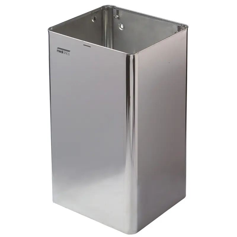 Контейнер для отходов без крышки, емкостью 65 л, изготовлен из цельного материала, полностью герметичен. Устанавливается на полу или на стене с помощью 2 отверстий, просверленных на задней стенке прибора. Подходит для туалетов и внутренних общественных помещений с очень высокой проходимостью. Модель подходит для общественного пользования.