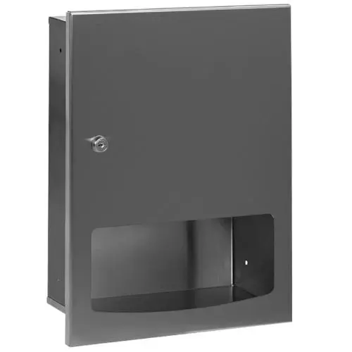 -Антивандальное исполнение; -изделие для бумажных полотенец монтируется в стену; -лицевая часть корпуса закрывается на замок, ограничивая доступ к внутреннему содержимому; -вместимость 600-800 бумажных листов; -тип поверхности: матовая.