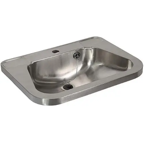 Нержавеющий умывальник, консоли, переливной комплект, включая резиновую пробку и цепочку, сифон, крепежный комплект.