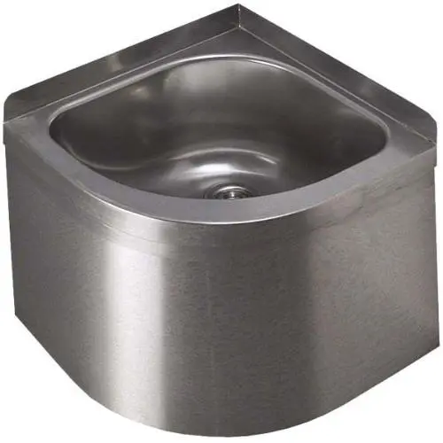 Подвесная угловая раковина, без отверстия для смесителя, размер: 36х36 см, материал: нержавеющая сталь, матовая поверхно…