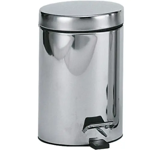 Гигиеническое мусорное ведро из нержавеющей стали AISI 430, глянцевая. Толщина пластины: 0,35 мм Крышка с педальным управлением. Черное пластиковое внутреннее ведро с ручкой.