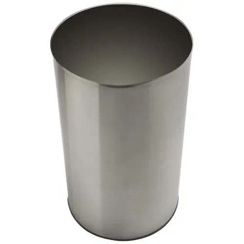 Контейнер для мусора без крышки. Корпус из листовой нержавеющей стали AISI 304 толщиной 1 мм. Основание контейнера из термопластичного материала. Общая вместимость: 80 литров. Ведро имеет круглую форму, а толщина стали составляет 1,2 мм, что защищает от попыток вандализма.