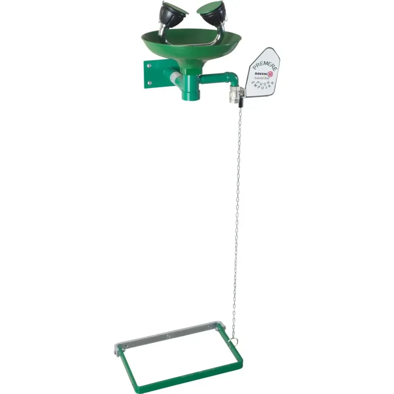 Раковина самопомощи подходит для промышленности, мастерских, лабораторий и в целом там, где существует риск повреждения пожаром, кислотами, реагентами, нефтепродуктами, радиоактивными материалами или любыми другими загрязняющими элементами. Приводится в действие педалью и боковым рычагом.