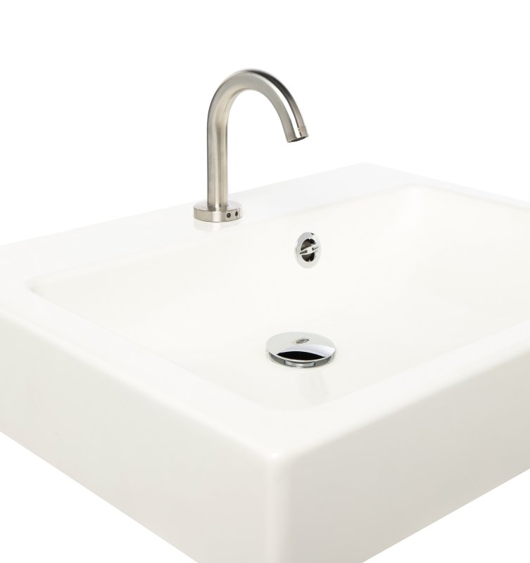 Смеситель самостоятельно настраивается при первом включении, а для удобства возможна дистанционная регулировка сенсора с помощью пульта (продается отдельно). В конструкции установлен пластиковый электромагнитный клапан с встроенным фильтром грубой очистки, без регулировки потока.
