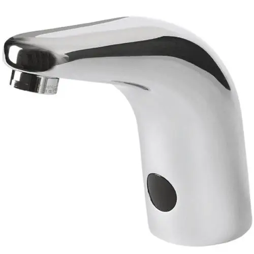 Устройство реагирует на присутствие рук в чувствительной зоне инфракрасного датчика немедленным пуском воды. Подача воды прекращается после удаления рук из зоны чувствительности, время задержки выключения можно изменять.