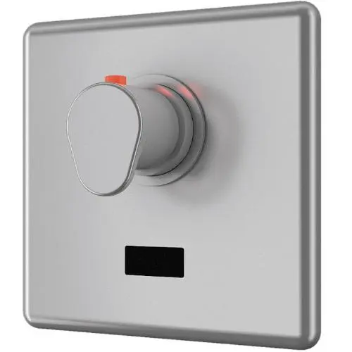 Sanela SLS 02T – это современная система автоматического управления душем, оснащенная термостатическим смесителем. Она работает от постоянного напряжения 24 В и предназначена для подачи теплой и холодной воды. Устройство имеет гигиенический смыв и защиту от ожогов благодаря наличию предохранителя. Присутствие человека в зоне чувствительности системы запускает подачу воды, которая прекращается через установленное время после ухода человека. Функция автоматического отключения воды срабатывает через 5 минут после начала использования. Также предусмотрена возможность настройки параметров устройства при помощи пульта дистанционного управления. Продукт выполнен из нержавеющей стали, что обеспечивает долговечность и надежность эксплуатации. Технические характеристики включают регулировку температуры с помощью термостата, инфракрасное управление, размер нержавеющей крышки 170 x 170 x 10 мм, размер монтажной коробки 150 x 160 x 65 мм, рабочее давление 0,1 - 0,6 МПа и расход воды 12 л/мин.