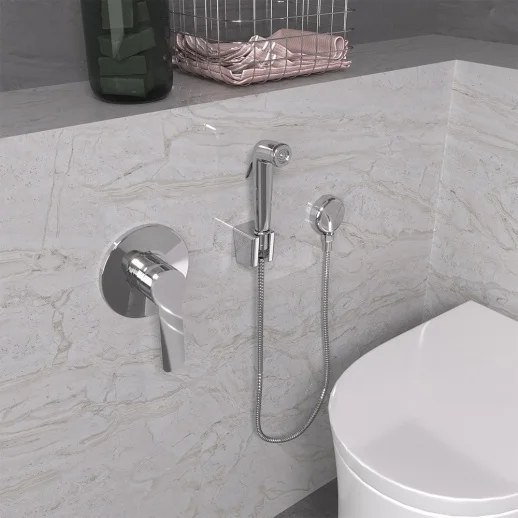 Основой модели является латунный смеситель со скрытым монтажом, что обеспечивает аккуратный внешний вид и экономит пространство. Излив высокого качества и поворотный механизм делают использование максимально удобным. В комплект входит лейка гигиенического душа из прочного ABS-пластика, гибкий шланг длиной 120 см и настенный держатель — всё, что нужно для быстрого и удобного монтажа.