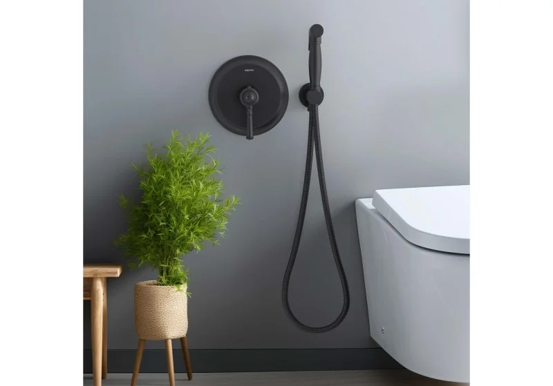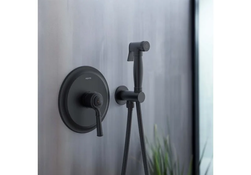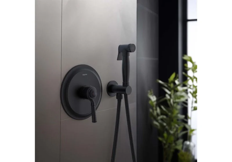 Набор с гигиеническим душем (смеситель + гигиеническая лейка + шланг + шланговое подсоединение с держателем) AQUATEK, матовый черный AQ1519MB КЛАССИК