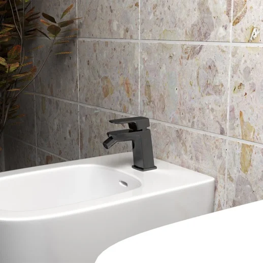 Однорычажный смеситель из латуни с матовым черным покрытием (порошковая окраска с эпоксидными смолами для устойчивости к царапинам), керамический картридж Nuovo Galatron 30 мм для плавной регулировки температуры и напора. Габариты: высота изделия 123 мм, длина излива 112 мм, высота излива 72 мм; стандарт подводки G 3/8" (12x17), гибкая подводка, фиксированный излив, аэратор Neoperl для насыщения струи кислородом и экономии воды. Производство Paini (Италия), гарантия 5 лет, вес 1.3 кг, монтаж через 1 отверстие на биде или столешницу.