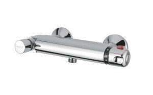 Главная особенность модели — встроенный термостат, позволяющий задавать и поддерживать комфортную температуру воды, что исключает риск ожогов и повышает безопасность пользователей. Надёжный корпус из качественного металла с долговечным хромированным покрытием защищает смеситель от коррозии и механических повреждений, обеспечивая долгий срок эксплуатации даже в условиях интенсивной эксплуатации.