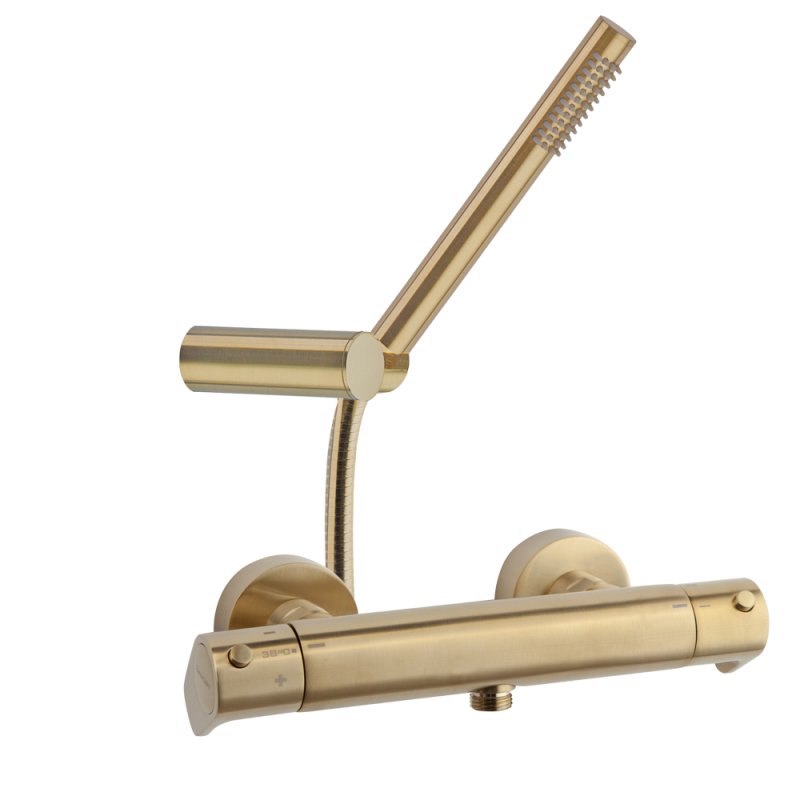 Термостатический смеситель для душа наружнего монтажа с душевым комплектом ALEXIA 3634DOC золото брашированное