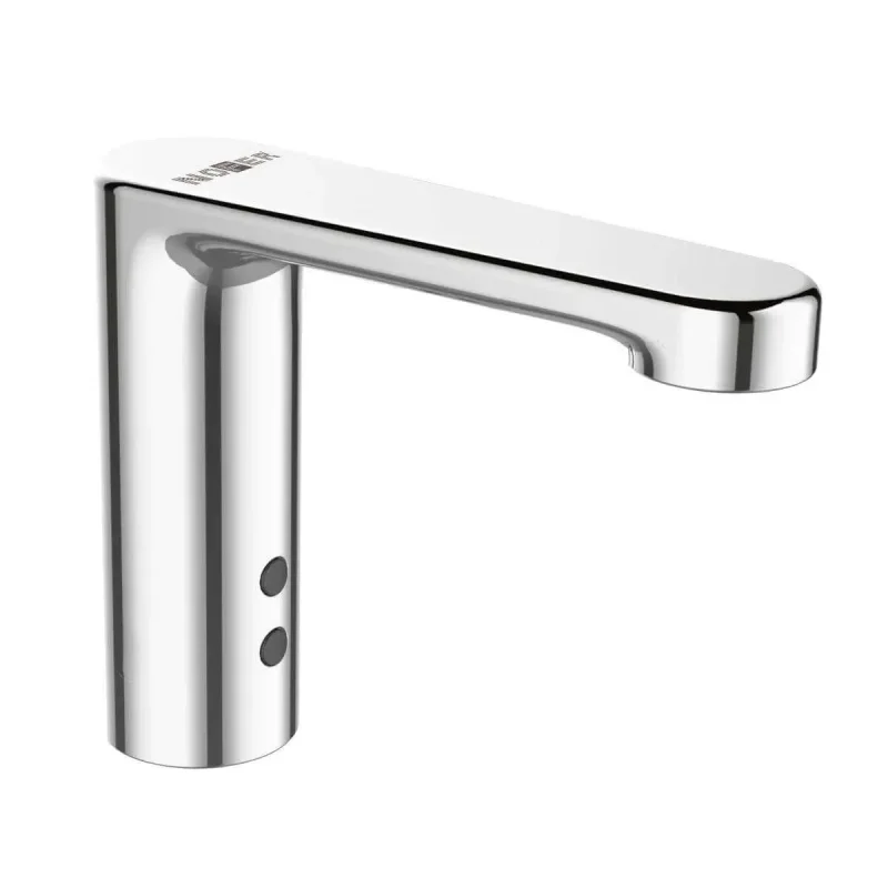 Автоматический водопроводный кран для умывальника Установка на столешницу с автоматической системой активации через встроенный в нее инфракрасный датчик Работа от сети 220 В 50/60 Гц или от 4 батареек АА, обеспечивающих 6 В в случае сбоя питания. Расход 6 л / мин при давлении 3 бара Материал: хромированная латунь CW617N