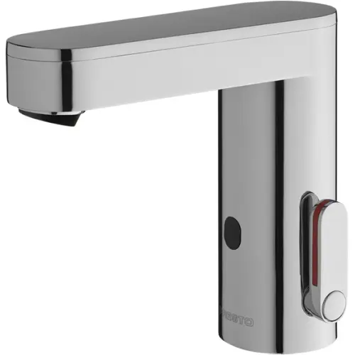 Подача и смешивание холодной и горячей воды, эргономичный внешний вид, надёжная, антивандальная конструкция, смеситель оснащен обратным клапаном и фильтрующими прокладками. Температура воды может быть изменена путем регулировки рычага смесителя в задней части крана(6 положений). Порционный смеситель с сенсорным датчиком и электронным управлением. Высококачественный аэратор с защитой от накипи, включение смесителя путём поднесения рук в область действия фотоэлемента. Автоматическое выключение смесителя через 30 секунд или при удалении рук из области действия сенсора. Питание смесителя от сети 230 В, трансформатор в герметичной коробке, IP65.