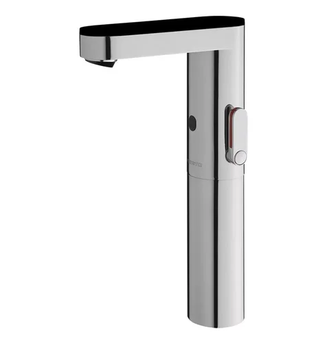 Безопасность: Автоматическое закрытие электроклапана после 30 сек. работы смесителя, а также в случае неисправности датчика (фотоэлемента) или износа аккумулятора/перебоя питания, Ограничитель температуры воды 38 ° C