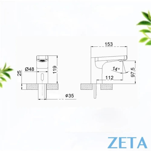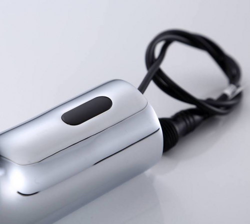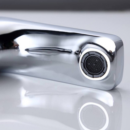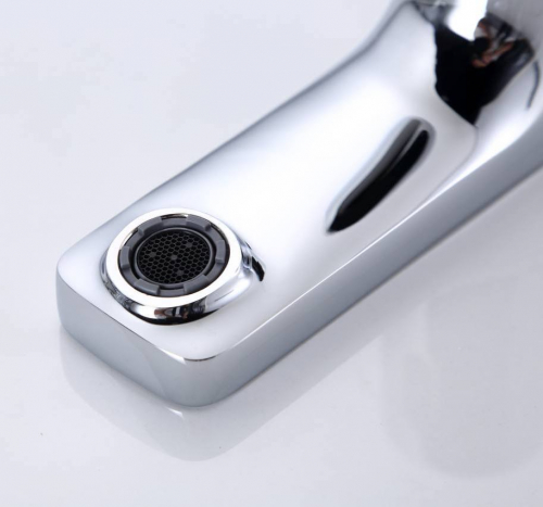 Сенсорный смеситель из высококачественной латуни с хромированным глянцевым покрытием, бесконтактное управление инфракрасным датчиком (срабатывание на 25-30 см); габариты: длина излива 153 мм, ширина 48 мм, общая длина 153 мм, вес 2,2 кг (упаковка ~2,2 кг). Питание двойное (от сети 220В с блоком или 4 батарейки AA, потребление до 2 Вт), рабочее давление 0.05-0.7 МПа, диаметр подключения 1/2", фиксированный монолитный излив с аэратором, расход воды ~11 л/мин, автоматическое отключение после 60 сек. Соответствует стандартам гигиены; производство Zeta (Китай), гарантия 2-5 лет, дизайн современный для экономии воды и безконтактного использования.