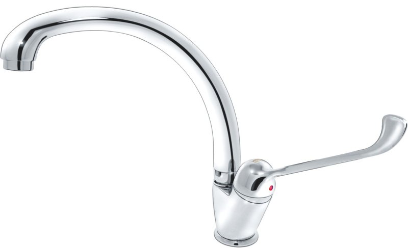 Смеситель российского производства, однорукояточный с высоким изливом для кухонной мойки, с нижней подводкой/смеситель для раковины с максимальным изливом, разработан с учетом особенностей эксплуатации в России.