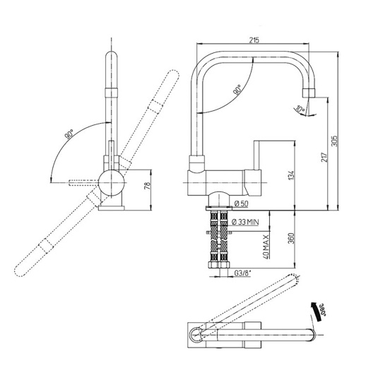 ⦁ Излив средней длины с поворотным механизмом позволяет направлять поток воды в разные точки мойки, увеличивая удобство при наполнении больших ёмкостей или мытье крупной посуды.