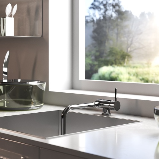 ⦁ Универсальный дизайн: классический хром гармонично смотрится с любыми элементами кухонного интерьера.